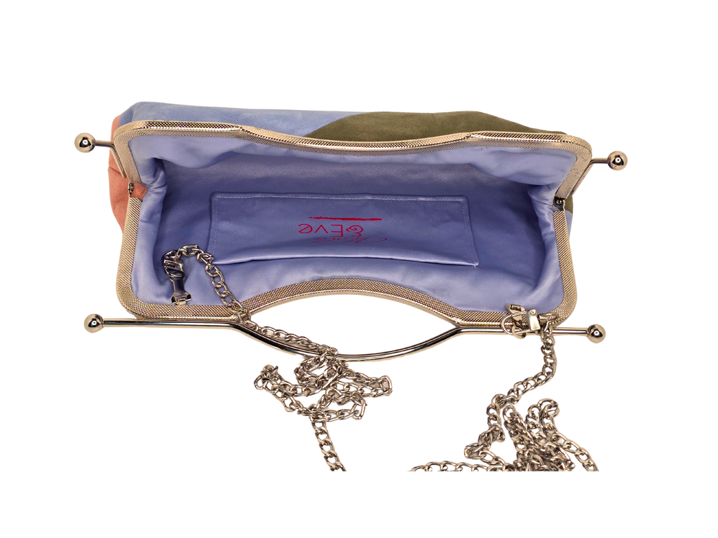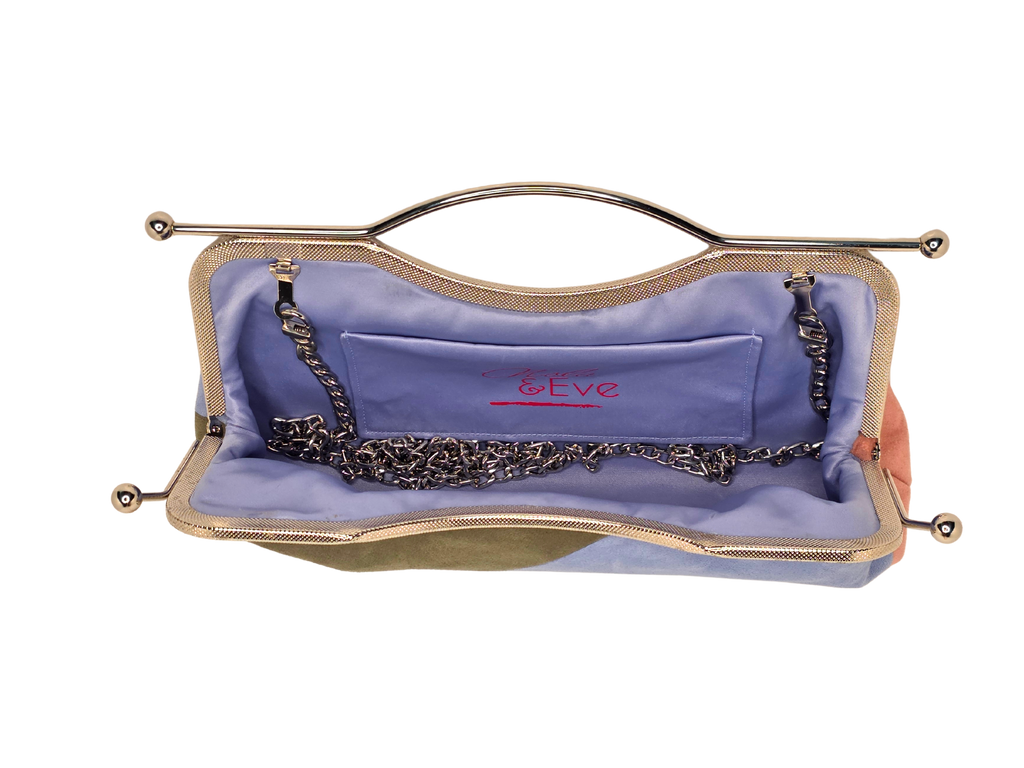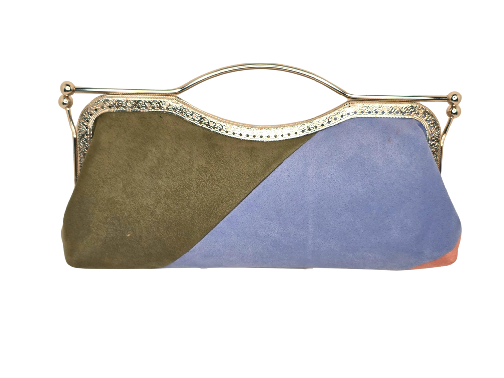 Elevate your style with the Triad Faux Suede Luxe Clutch, a chic and versatile accessory that brings together a sophisticated blend of colors. Made from luxurious faux suede, this clutch features a stunning geometric design in two captivating color combinations: a calming mix of light blue, navy, and mauve, or a serene pairing of light blue, sage, and mauve. The clutch is perfect for day-to-night transitions, adding an elegant pop of color to any outfit. With its sleek handle and spacious interior, including a detachable chain, this clutch is as functional as it is fashionable, making it your go-to piece for any special occasion or casual outing.